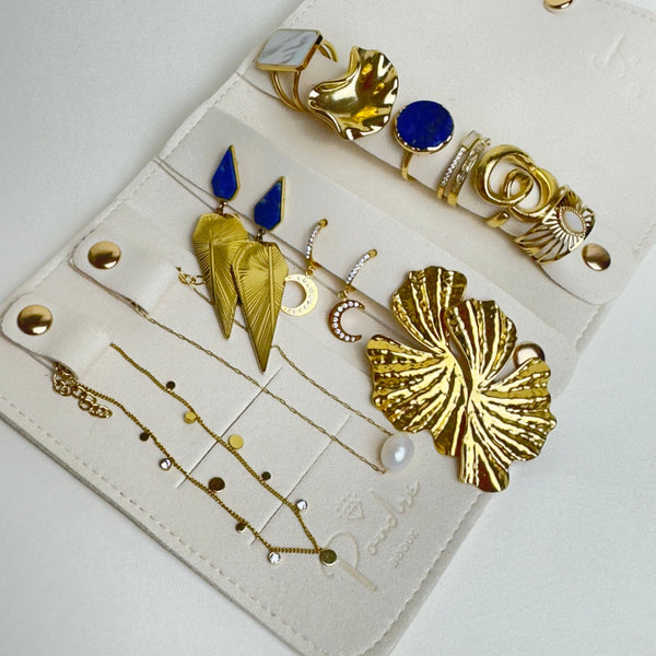 Nos bijoux sont résistants à la vie quotidienne. Pour préserver durablement leur éclat, nous recommandons d’éviter le contact prolongé avec l’eau, le parfum ou les produits chimiques.